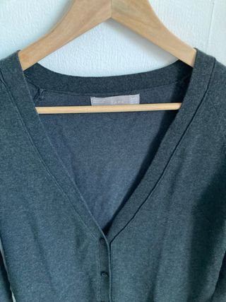 Cárdigan de punto fino con botones. - Diseño de cuello en V. - Dos bolsillos delanteros. - Mangas de tres cuartos.