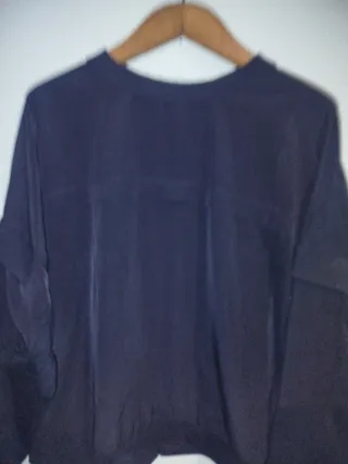 Jersey de punto fino de Zara. Color azul medio más oscuro de lo que aparece en las fotos. Poco uso. Talla S, pero amplio. - Cuello redondo. - Puños con botones dorados. - Manga larga.