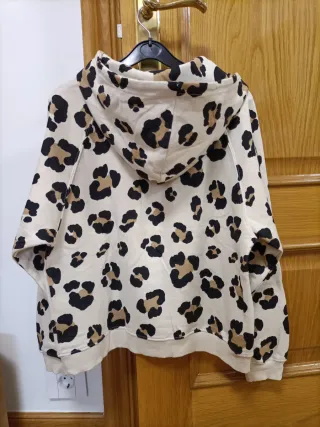 Sudadera con capucha de Zara con un llamativo estampado de animal print.talla 13-14 - Diseño de leopardo. - Capucha. - Manga larga.