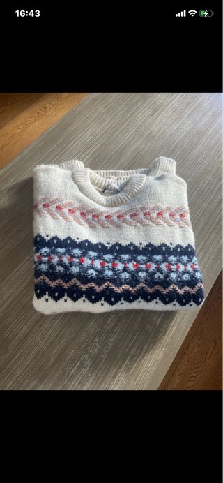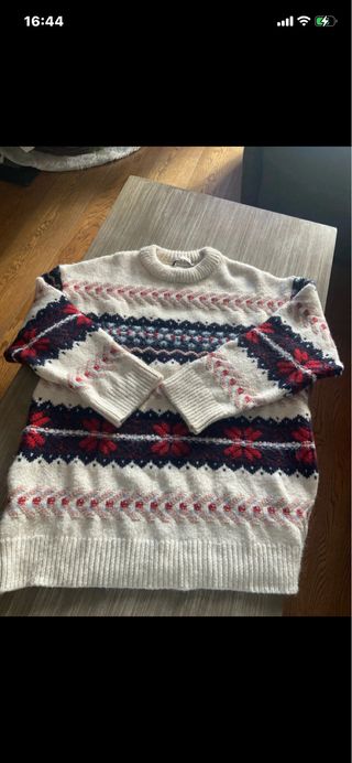 Jersey de punto con diseño Fair Isle. - Cuello redondo. - Manga larga. - Estampado geométrico en contraste pone que es la M era más bien es la L, me quedaba grande y no tenia ticket porque era un regalo... sin estrenar