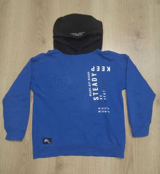 Sudadera azul del Zara - Estampado frontal GET en relieve. - Capucha integrada con texto