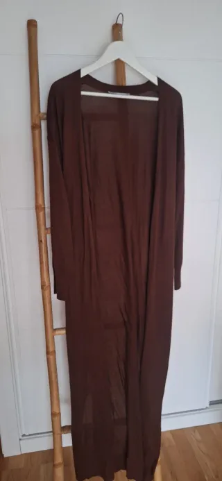 Chaqueta mujer larga de punto fino de Zara, color marrón chocolate. Talla S. En perfecto estado, como nueva, puesta un par de veces.