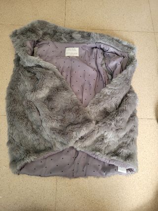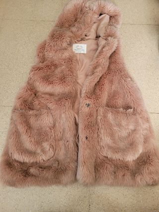 Chaleco con pelo talla 11-12, tiene capucha. Se abrocha con botones.