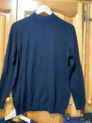 Jersey de Zara con un diseño único y moderno. - Color azul marino. - Tejido con textura de relieve. - Cuello alto.