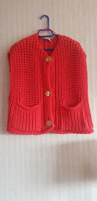 Chaleco de punto de Zara. - Diseño sin mangas. - Cierre de botones grandes metalicos dorados - Dos bolsillos delanteros. Color naranja