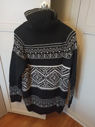 Jersey de punto con estampado jacquard y detalles de botones en los laterales. Talla pequeño, es más bien una M - Diseño de cuello redondo. - Manga larga. - Bajo con acabado festoneado.