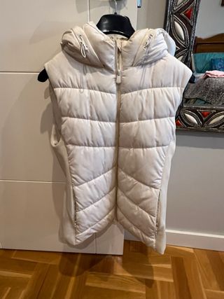 Chaleco acolchado con capucha de Zara. - Diseño sin mangas. - Cierre de cremallera frontal. - Paneles laterales de canalé.