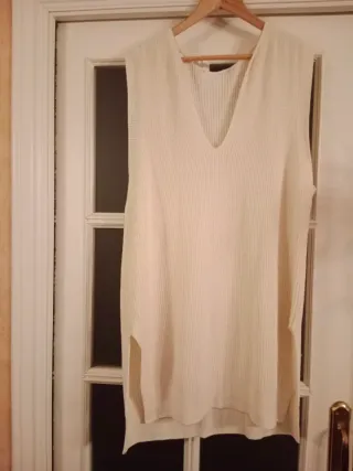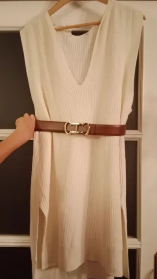 Maxi chaleco de punto en color hueso, perfecto para añadir un toque elegante a tu atuendo. Zara oversize. Ideal con un cinturón (no incluido). Muy estiloso.