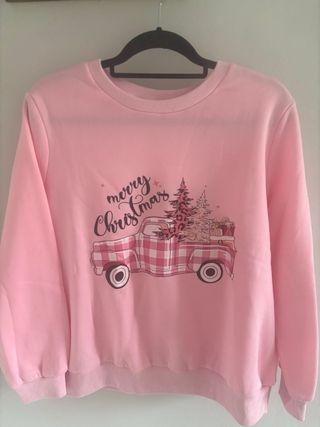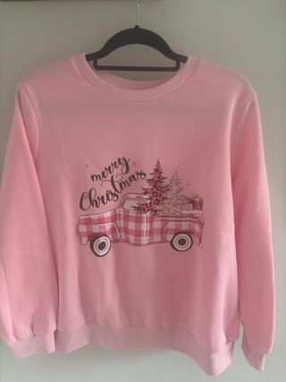 Sudadera rosa Merry Christmas con camión
