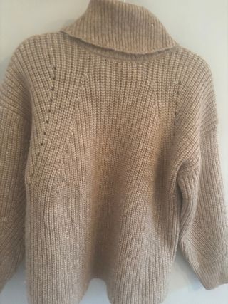 Jersey cuello alto beige y dorado