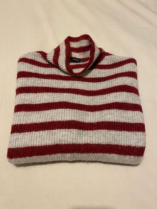 Jersey de punto con cuello alto y estampado de rayas horizontales. - Diseño de rayas - Cuello alto tipo cuello cisne.