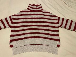Jersey sweater de punto fino en color gris con estampado de tijeras y raya discontínua en negro. Manga larga y cuello redondo. Marca Zara Knit talla M, como nuevo, muy poco uso.