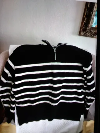 Jersey Rayas Zara Negro Blanco Media Cremallera