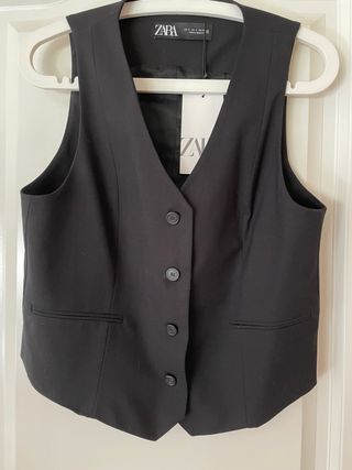 Chaleco elegante de Zara. - Diseño de corte clásico. - Cierre de botones. - Bolsillos frontales.