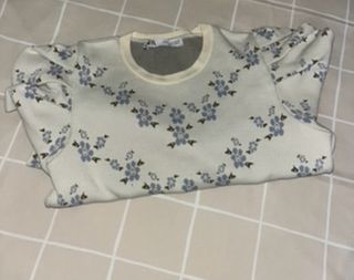 Jersey de Zara con un bonito estampado floral. - Diseño con flores azules y detalles en marrón. - Manga larga abullonada. - Cuello redondo.
