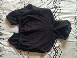 Jersey negro de manga larga con corte crop top. - Diseño moderno y versátil. - Tejido suave y cómodo.