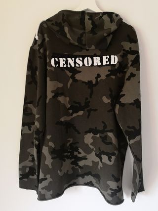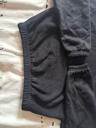 Sudadera negra con detalles modernos. Totalmente nueva y con etiquetas. Lleva varios tejidos combinados. Muy calentita. - Capucha con acolchado. - Detalle acolchado en la manga.