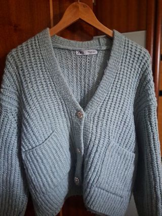 Cárdigan azul marino en perfecto estado. Es ideal para cuando hace fresquito. Muy cómodo, no queda muy ajustado. La etiqueta se cortó porque picaba. Precio negociable!