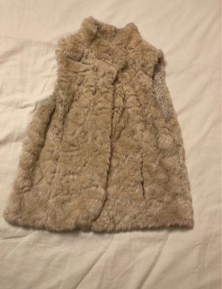Chaleco de pelo sintético con un tacto muy suave y agradable. Cuenta con capucha y bolsillos. Cierre con botones.