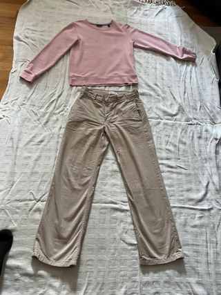 Conjunto de dos prendas. - Sudadera de manga larga en color rosa. - Pantalón largo en color beige de Zara