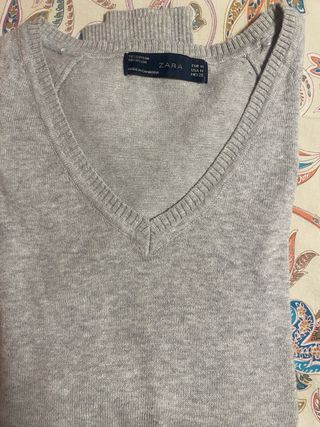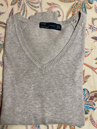 Jersey de punto fino de Zara en color verde. - Cuello en pico. - Manga larga. - 100% Algodón.
