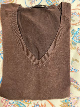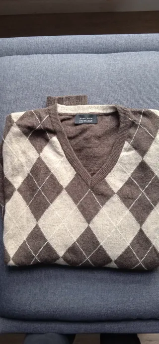 Cárdigan de punto con diseño de rombos en tonos marrón y beige. - Cuello en V. - Cierre de botones. - Puños y bajo acanalados. -zara,Lefties y Benetton