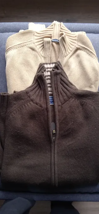 Dos cárdigans de punto de la marca Massimo Dutti y zara - Un cárdigan de color beige. - Un cárdigan de color marrón con cremallera. - Talla M.