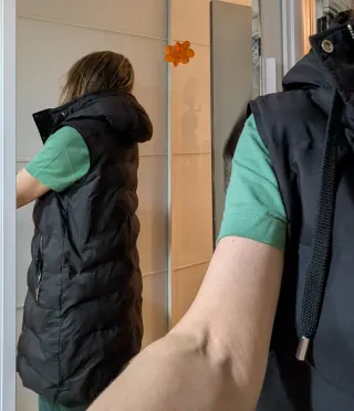 Chaleco acolchado de Zara con capucha. - Cierre de cremallera frontal. - Dos bolsillos con botón a presión. - Diseño acolchado. - Esta completamente nuevo costo 36 euros y lo vendo mas barato