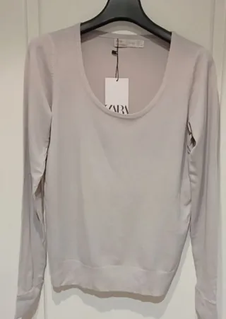 Jersey de punto fino de la marca Zara. - Cuello redondo. - Manga larga. - Tejido suave al tacto.