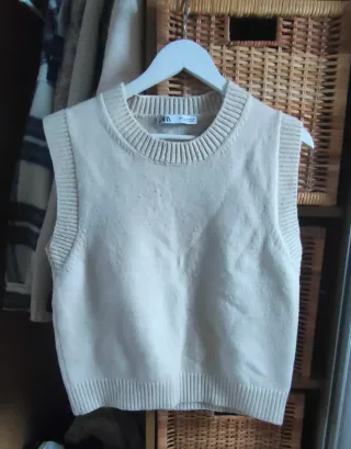 Jersey de punto sin mangas de Zara. - Cuello redondo. - Tejido suave y cómodo. - Diseño versátil.