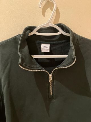 Sudadera Zara Cremallera Verde Talla XL En Muy Buen Estado