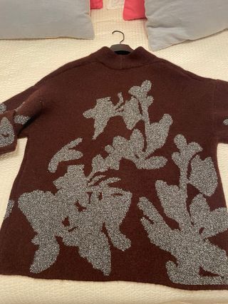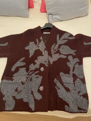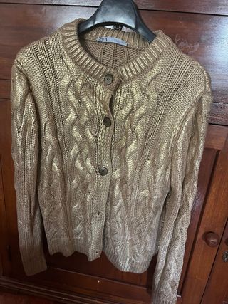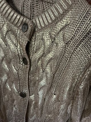 Cárdigan de punto con un bonito diseño trenzado y un acabado metalizado que le da un toque especial. - Cierre de botones. - Cuello redondo. - Manga larga. sin estrenar talla poco