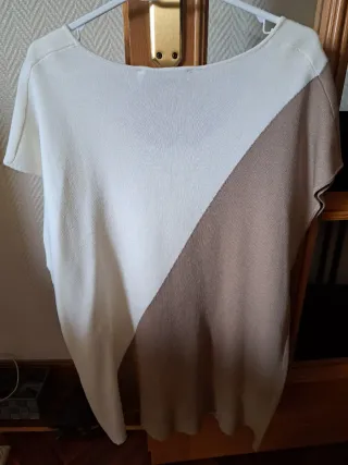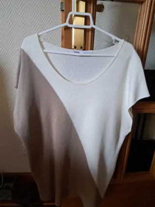 Jersey largo de Zara con un diseño moderno y elegante. - Diseño de dos tonos: beige y blanco. - Corte largo y holgado. - Tejido de punto suave.