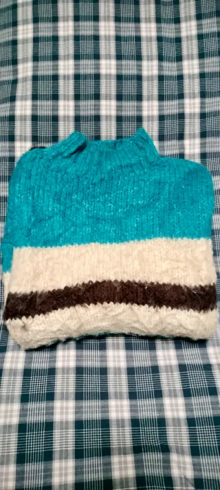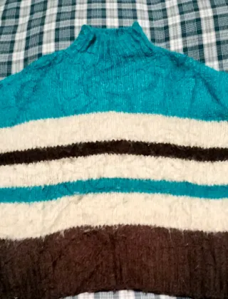 Jersey Zara Mujer Rayas Teal Blanco Marrón