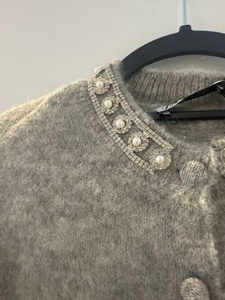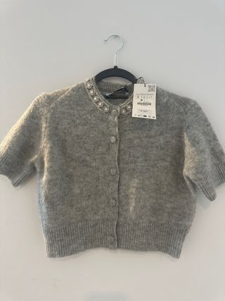 cárdigan de punto Zara Lana Perlas Gris Talla S