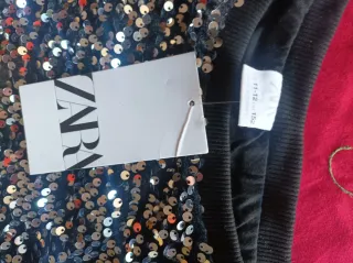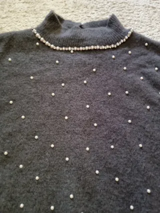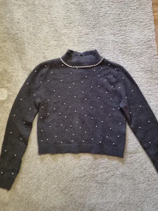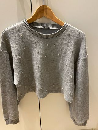 Jersey de Zara con un diseño moderno y detalles brillantes. Perfecto para añadir un toque especial a tu look. - Tejido suave y confortable. - Adornado con pequeños brillantitos. - Corte moderno.