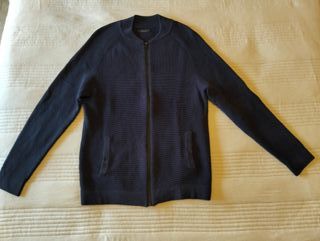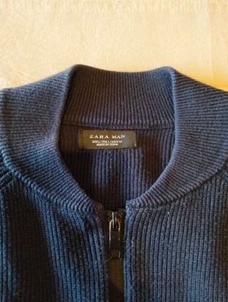 Jersey de punto azul de Zara con cierre de cremallera, cuello redondo y bolsillos laterales. Talla L y diseño ajustado (puede servir para un hombre con talla M). Muy cálido y agradable para el invierno. Ha sido usado, pero está en muy buen estado. Podéis escribirme para cualquier duda.
