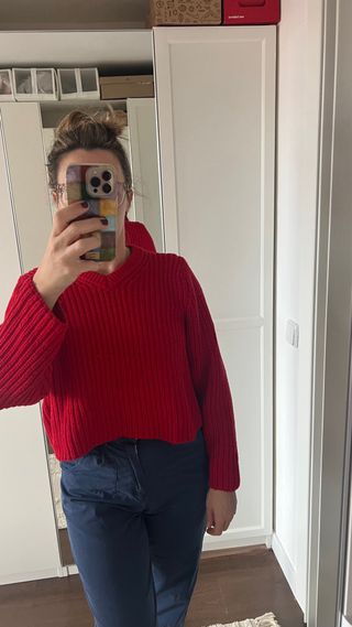 Jersey crop de punto grueso en color rojo. - Diseño crop - Cuello redondo - Manga larga
