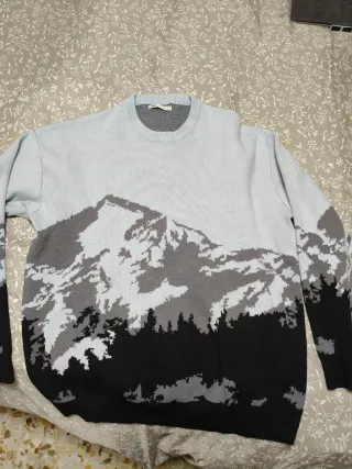 Jersey de punto con diseño de montaña y bosque. Ideal para un look casual. - Manga larga. - Cuello redondo.