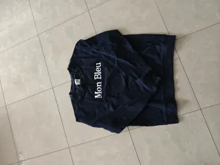 Sudadera azul con texto Mon Bleu bordado. - Cuello redondo. - Manga larga. - Tejido texturizado.