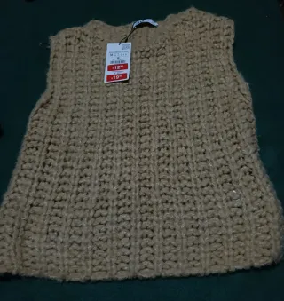 Chaleco de punto de Zara en color marrón. Un básico versátil para cualquier look. - Diseño sin mangas. - Tejido con textura. - Cuello redondo.