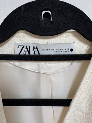 Chaleco largo de Zara en color blanco crudo, perfecto para añadir un toque elegante a cualquier atuendo. - Diseño sin mangas. - Cuello de solapa pronunciado. - Cinturón a juego para ajustar la cintura, de un solo lado, con cierre de botón. - Dos bolsillos de parche en la parte delantera.