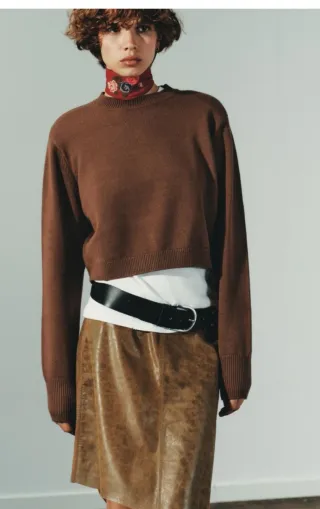 Jersey de punto Zara en color gris. Es una prenda cómoda y versátil. - Diseño de cuello redondo. - Manga larga. - Corte cropped.