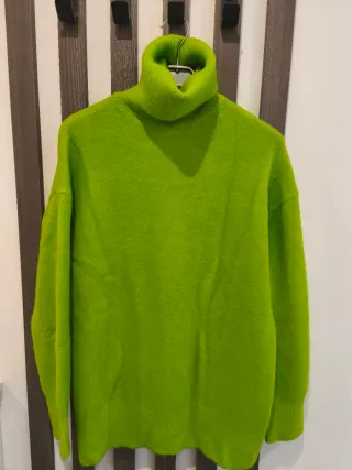 Jersey oversize de Zara con cuello alto. Su tejido es suave y agradable al tacto. - Diseño holgado. - Cuello alto. - Manga larga.