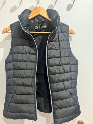 Chaleco acolchado de la marca Zara. Es una prenda versátil y cómoda. - Cierre de cremallera. - Cuello alto.