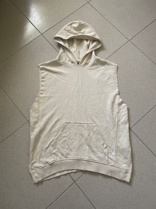 Sudadera sin mangas con capucha beige
