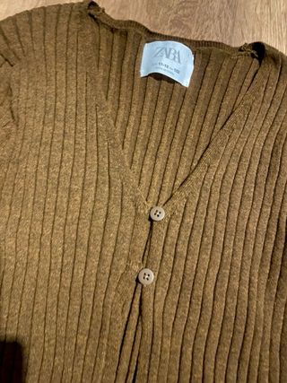 Cárdigan de punto fino de Zara, ideal para añadir una capa extra a tu atuendo. - talla 11/12 - Diseño de canalé. - Cuello en V. - Cierre de botones. - Manga larga. Nueva