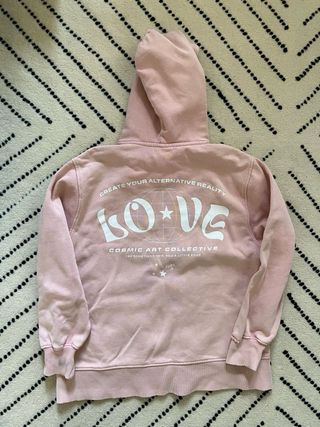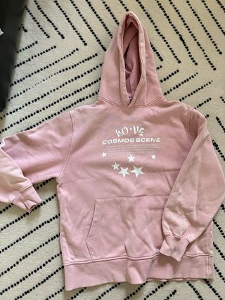 Sudadera con capucha en color rosa, con un diseño gráfico de LOVE COSMOS SCENE y estrellas. Talla 11-12 años 150 cm - Estampado frontal. - Bolsillo canguro. - Puños y bajo elásticos.