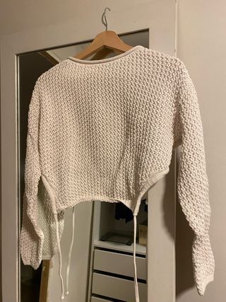Suéter de punto beige, se ata en la espalda