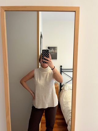 Jersey Zara cuello alto sin mangas beige